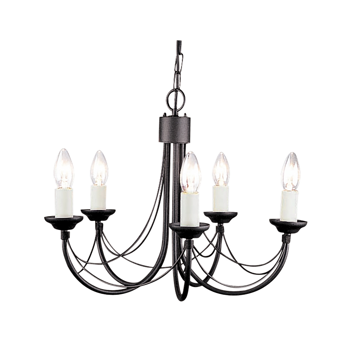 Люстра Elstead Lighting CB5-BLACK из коллекции Carisbrooke. Готический светильник ручной работы с канделябрами, переплетенной проволочной драпировкой и цоколем для ламп кремового цвета. Адаптирован для установки дополнительных плафонов (gs81). Можно использовать при освещении гостинной, кухни, спальни, столовой.