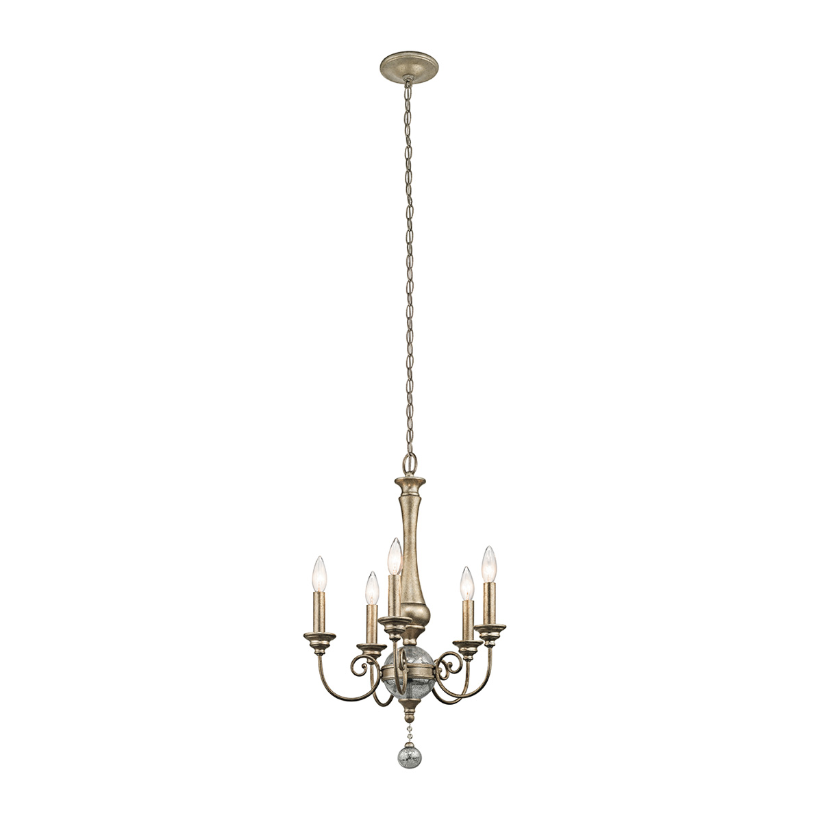 Люстра Elstead Lighting KL-ROSALIE-5A. Светильник поражает стилем и изысканностью. Переосмысление классического дизайна williamsburg делает его идеальным дополнением к любой комнате. Элементы светильника имеют отделку «сусальное серебро», которая представляет собой впечатляющую комбинацию серебряных и золотых тонов и состаренного стекла. Поставляется с цепью длиной 1829 мм