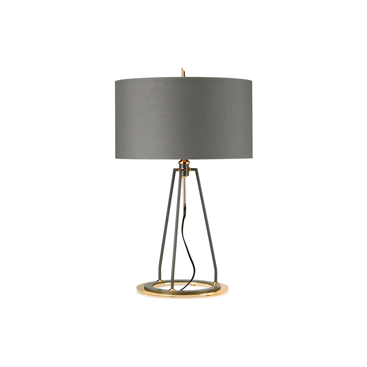 Настольная лампа Elstead Lighting FERRARA-TL-GPG. Едва заметные ножки основания создают эффект легкости и полета конструкции над столом. Светильник дополнен серым абажуром из поликоттона. Внутри абажур золотого цвета с металлическим эффектом. Основание в цвете - Темное полированное золото. Можно использовать при освещении гостинной, кабинета, спальни.