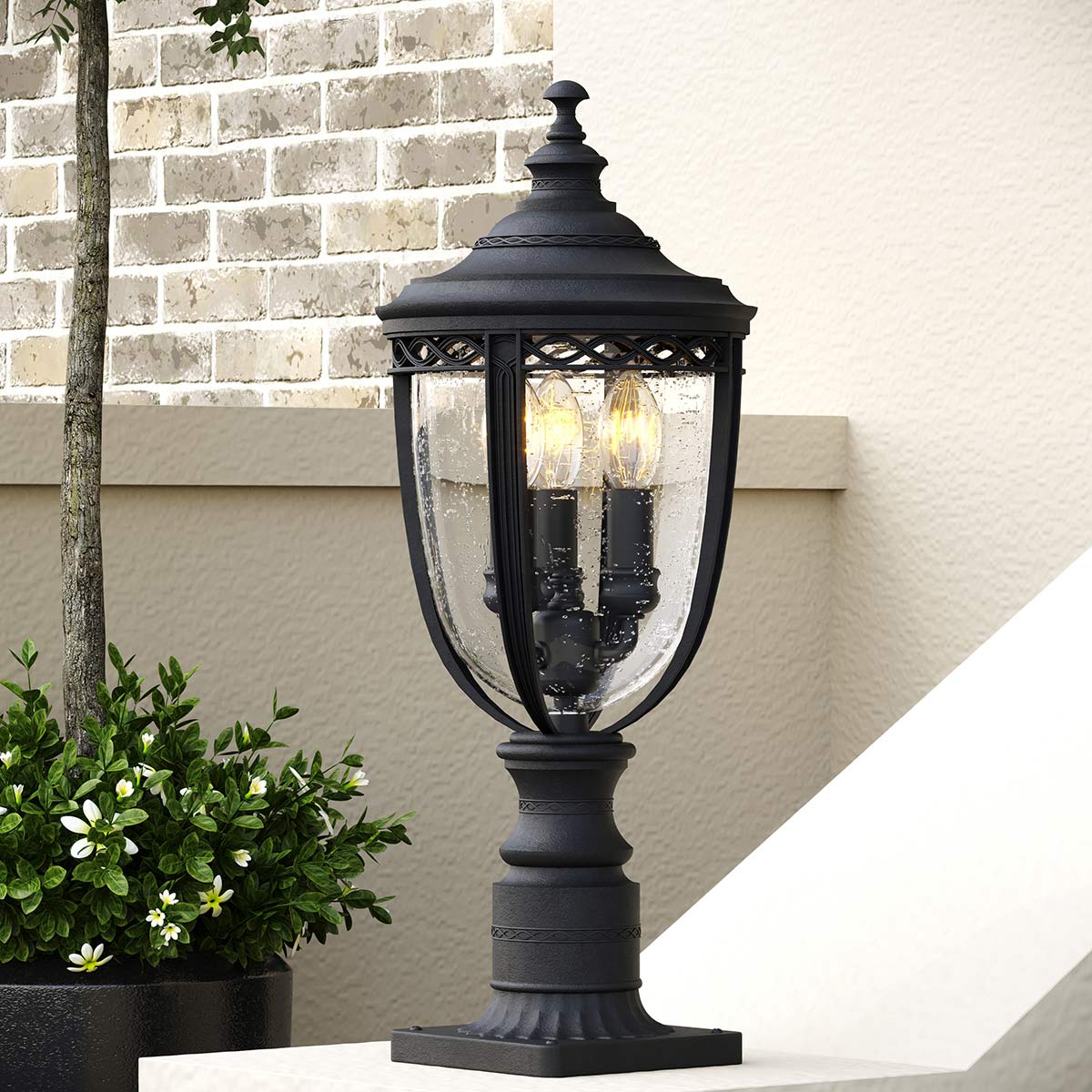 Фонарь пьедестал Elstead Lighting FE-EB3-M-BLK из коллекции English Bridle. Светильник выполнен в староанглийском деревенском стиле, который прекрасно подойдет для загородной усадьбы. Прозрачное стекло с маленькими вкраплениями воздушных пузырьков подчеркивает классический вид в сочетании с шармом старого света. Основание в отделке - Черный. Степень защиты IP44.