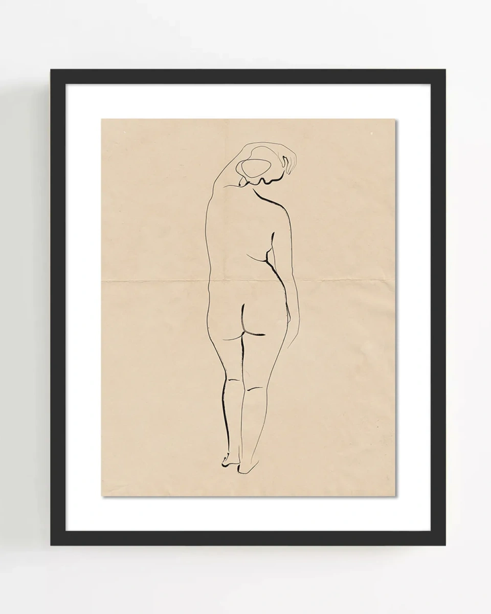 Интерьерный постер "Nude" - это минималистичное изображение женской фигуры, выполненное в технике контурного рисунка. Фигура изображена сзади, с одной рукой, поднятой над головой, что создает ощущение расслабленности и естественности. Фон постера выполнен в светлом оттенке, что подчеркивает контраст черной линии рисунка. Такой стиль часто используется в современном искусстве и может символизировать темы самовыражения, уязвимости и красоты человеческого тела. Постер будет отлично смотреться в различных интерьерах, добавляя акцентный элемент и создавая атмосферу уюта. Он подходит для оформления как жилых помещений, так и творческих пространств.