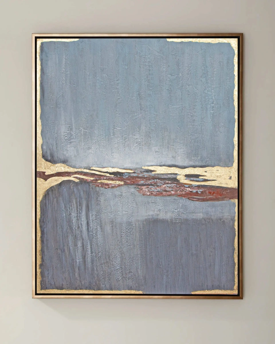 Картина в серебряной раме "Блу-шифт", в которой композиция развивается естественно с нанесённой краской слоями, позволяя более ранним слоям оставаться видимыми и нарочито необработанными, чтобы цвета могли взаимодействовать друг с другом, придавая произведению баланс и глубину. Разместите эту картину в гостиной, спальне или офисе, чтобы ощущать ее вдохновляющее влияние каждый день. Эта картина является не только красивым украшением для вашего пространства, но и отражением творческого подхода к искусству, который привносит свежесть и оригинальность.