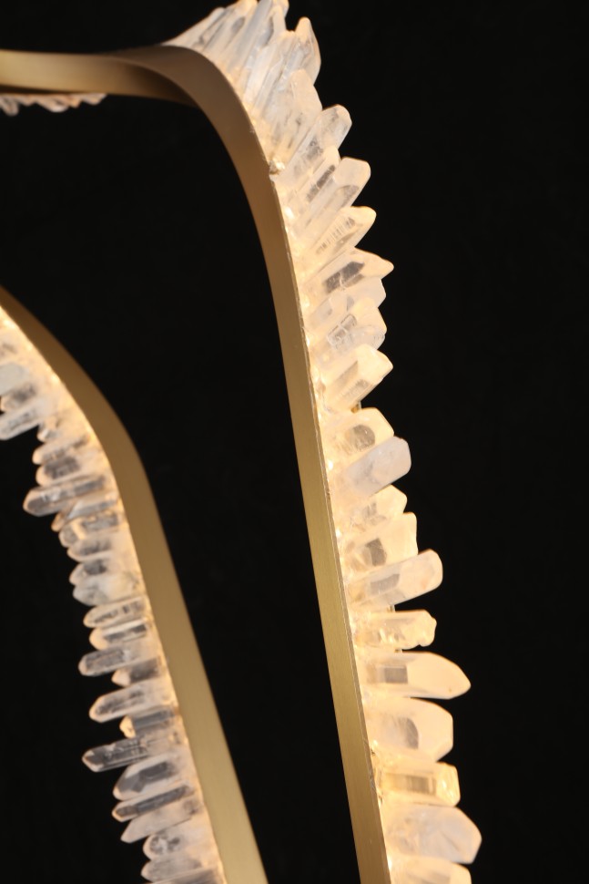 Светильники OPERA с натуральным горным хрусталем — воплощение утонченного дизайна. Их плавные формы создают впечатление бесконечной ленты света, обрамленной кристаллами с чарующим сиянием. Металлическая основа благородного оттенка латуни добавляет элегантности, превращая светильник в центральный акцент любого интерьера. Светильники коллекции идеальны для высоких потолков, больших залов или фойе.