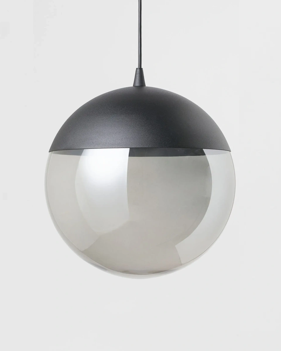 Большой чёрный светильник “Уорд” – это светильник передающий красоту минималистского дизайна, что делает его идеальным дополнением для современных интерьеров. Он напоминает мотив разделенного шара, который образует идеальный контраст между чёрным и дымчатым стеклом. Чёрный цвет придает ему контраст и добавляет еще больше стиля. Вы можете установить его отдельно или создать композицию из нескольких светильников из этой же серии. Повешенные в ряд или в группе, они создадут потрясающий эффект и превратят ваше пространство в стильное и уютное место. Он идеально подходит для гостиной, обеденной зоны, спальни или даже кабинета.