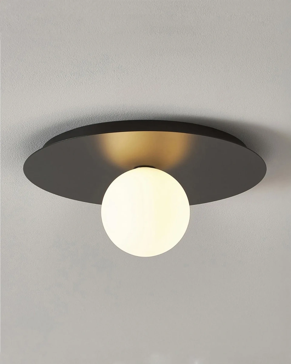 Чёрный настенно-потолочный светильник "Ноа" - это лаконичная и выразительная модель с акцентом на форму и свет. Круглая металлическая основа с чёрной отделкой создаёт эффект мягкого отражения, а матовый белый стеклянный плафон в форме шара обеспечивает равномерное и комфортное освещение без бликов. Дизайн выглядит графично и одновременно тёпло, что делает светильник универсальным для разных пространств. Светильник может устанавливаться как на стену, так и на потолок, что расширяет возможности его использования. Он отлично подойдёт для гостиной, спальни, коридора, холла или прикроватной зоны, а также для акцентного освещения в интерьере. Компактная конструкция делает модель уместной даже в помещениях с невысокими потолками. «Ноа» гармонично вписывается в интерьеры в стилях современный, американский, minimal, contemporary и modern classic. Светильник может использоваться как самостоятельный декоративный элемент или в композиции из нескольких светильников, добавляя пространству элегантности, чистоты линий и дизайнерской завершённости.