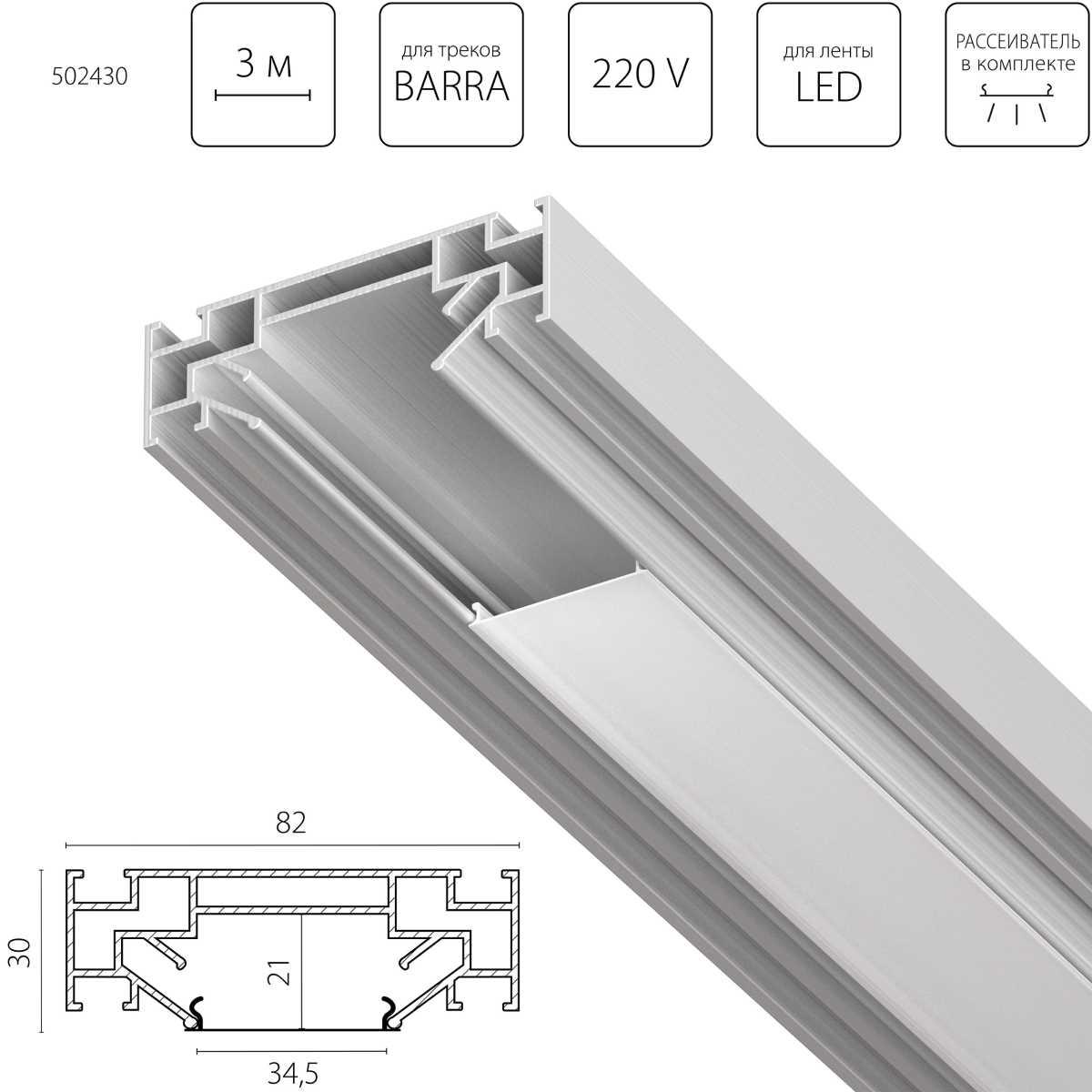 Профиль алюминиевый в натяжной потолок Lightstar Barra 502430 фото 2