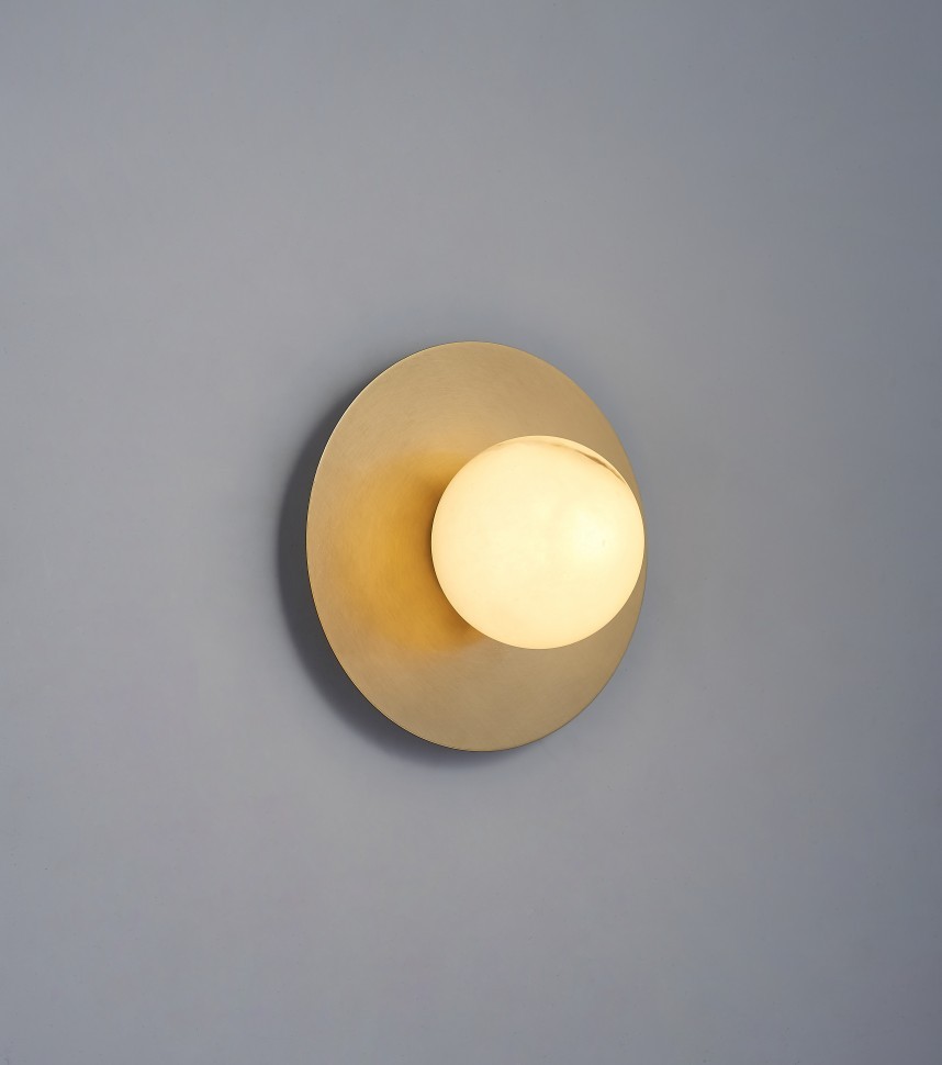 Корпус выполнен из натуральной латуни, а плафоны – из природного испанского алебастра. Мягкое свечение камня отражается в зеркальной гладкости латунного корпуса, создавая дополнительный источник света и формируя красивые блики.