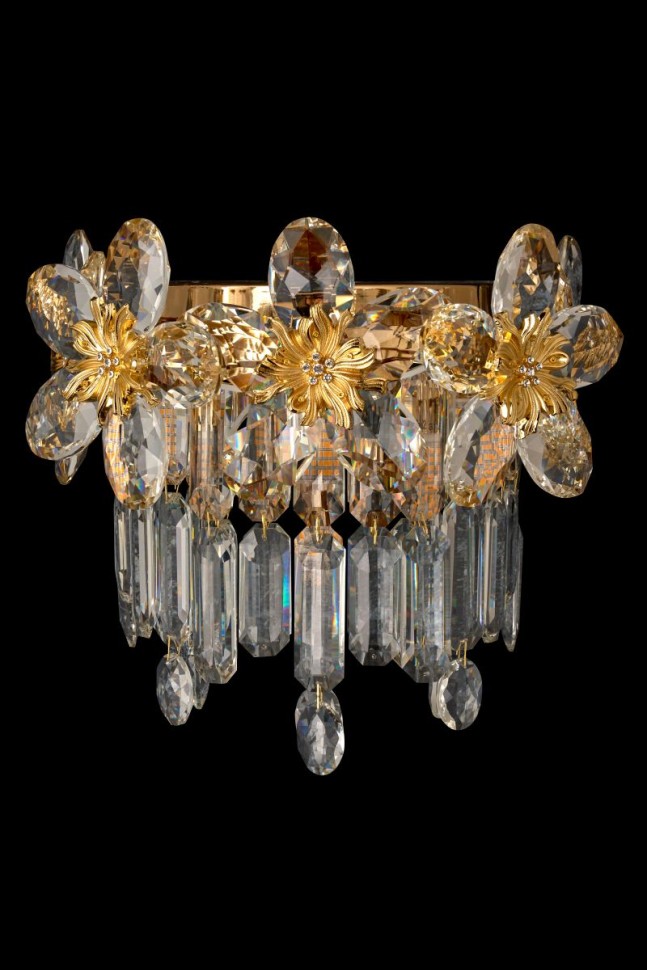 Вдохновение красотой цветов. Дизайн коллекции Jardin воплощает любовь к эстетике дворцовых садов. И каждый светильник – как отдельный сказочный сад из хрусталя. Декоративные элементы выполнены в виде крупных цветов, центр которых украшен сверкающими стразами. Подвижные элементы плафонов также из хрусталя высшего качества. Каждый элемент имеет множество граней, невероятно эффектно отражающих свет. Арматура светильников – из металла с гальваническим покрытием золотого цвета. Коллекция представлена люстрами различных размеров и форм и настенным светильником.