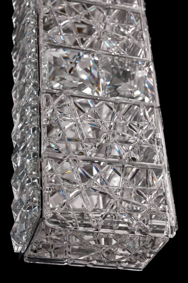 Впечатляющее сияние хрусталя подчеркнуто переливами корпуса светильника. Сложная, фантазийная огранка хрусталя, создает тысячи искрящихся переливов, виртуозную игру света.