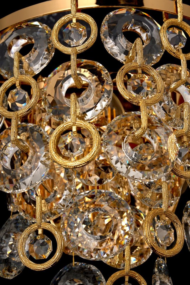 В переводе с итальянского название коллекции – «колокольчик». Светильники Campanella отличает нежный дизайн, имеющий сходство с этим красивым цветком. Декоративные элементы плафонов подвижны, как чашечки колокольчиков на ветру. Они выполнены из хрусталя высшего качества, в форме колец. Каждое кольцо имеет множество граней, невероятно эффектно отражающих свет. Хрустальные кольца дополнены кольцами из металла в цвете золота. Арматура светильников – из металла с гальваническим покрытием цвета золота. Коллекция представлена люстрами различных размеров и настенным светильником.