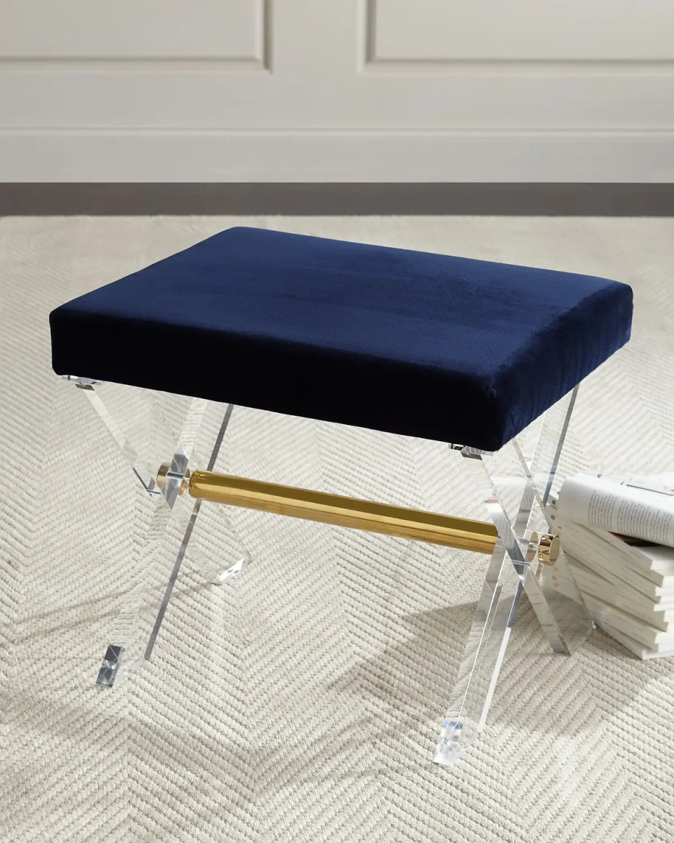 Синяя банкетка "Эйдан" - это стильное, мягкое и функциональное дополнение к вашему интерьеру. Эта банкетка идеально подходит для обновления внешнего вида комнаты, добавляя в нее стиля и уюта. Она выполнена в дизайне, который прекрасно впишется как в классические, так и в современные интерьеры. Основание банкетки изготовлено из прочного акрилового материала. Соединяется оно с металлической золотистой штангой, придавая банкетке изысканный и изящный вид. Эта комбинация материалов и цветов создает эффектный контрастный дизайн, который привлекает внимание и становится центральным элементом в помещении. Темно-синяя обивка банкетки "Эйдан" придает ей элегантный и изысканный вид. Цветовое решение подчеркивает стиль и характер изделия, делая его универсальным и легко сочетаемым с другими предметами мебели. Такой вариант подходит как для оформления гостиной или спальни, так и для использования в прихожей или кабинете. Синяя банкетка "Эйдан" не только украсит ваш интерьер, но и будет служить удобным функциональным элементом. Изысканная, современная и практичная - мягкая банкетка "Эйдан" станет прекрасным приобретением для тех, кто ценит качество, удобство и стиль в каждой детали своего дома!