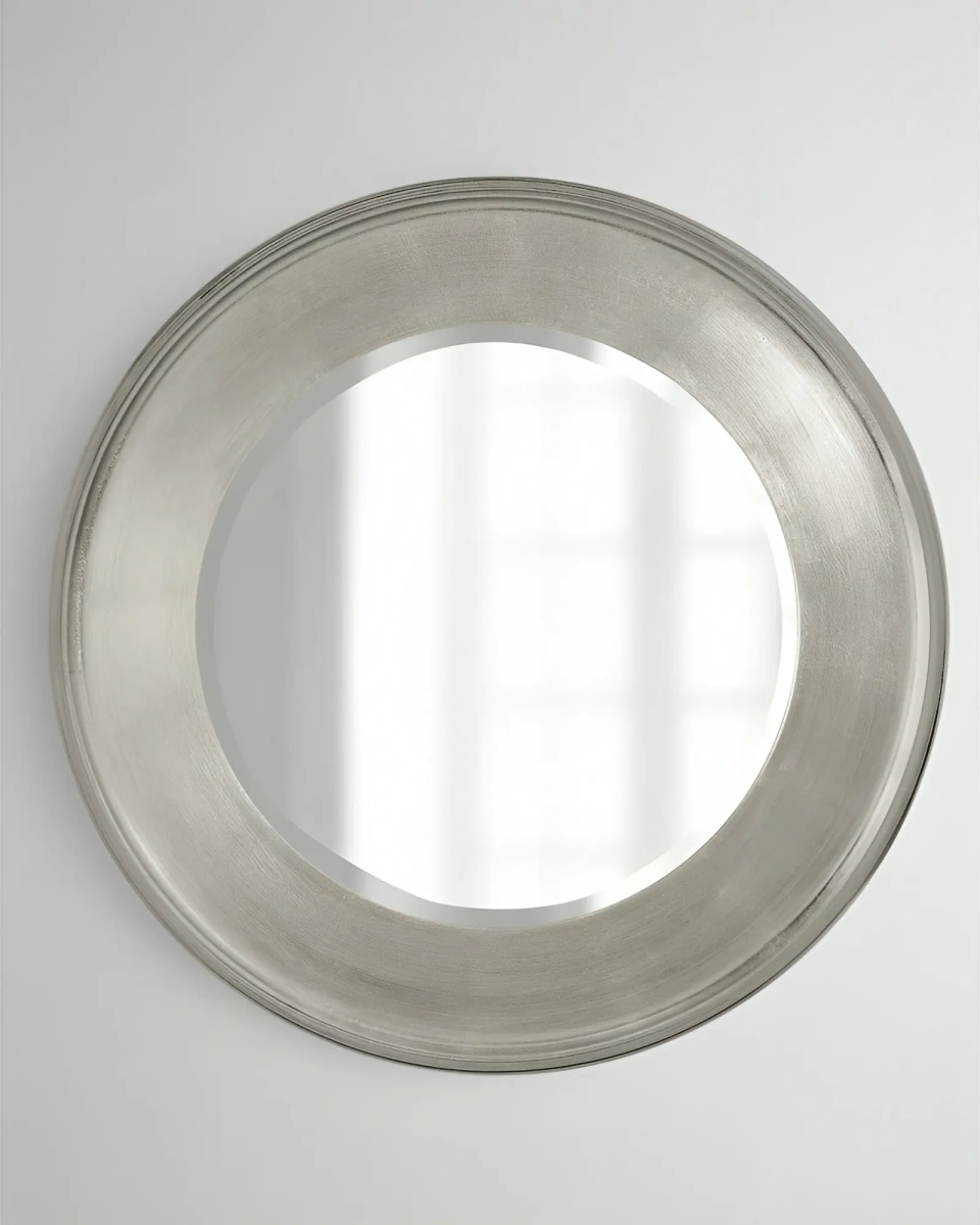 Серебряное настенное зеркало "Рассел" - это круглое зеркало в простой, лаконичной и широкой раме с потрясающей отделкой из серебряной потали. Благодаря своей форме и размерам, зеркало "Рассел" отлично впишется в любой интерьер, добавив ему шарма и элегантности. Серебряная поталь на раме зеркала создает потрясающий эффект, придающий изделию утонченность и изысканность. Этот дизайнерский штрих придает зеркалу особую привлекательность и делает его по-настоящему уникальным. Кроме того, зеркало "Рассел" не только является элементом декора, но и практичным предметом мебели. Оно поможет вам создать ощущение простора и уютной атмосферы в помещении, а также будет отличным средством для визуального увеличения пространства.