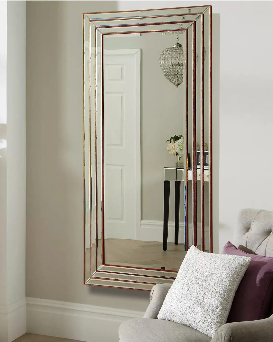 Золотое зеркало в полный рост “Ар-Деко” - это изысканное и стильное дополнение к вашему интерьеру. Оно выполнено в простом, но эффектном дизайне, который станет ярким акцентом в любом помещении. Главной особенностью этого зеркала является его большое отражающее полотно. Оно позволяет получить полный обзор в вашем отражении, от головы до пят. Такое зеркало идеально подойдет для использования в спальне или гардеробной, где вам важно видеть себя во всей красе и проверять свой образ перед выходом. Особое внимание заслуживает его багет. Багет представляет собой три ступени одинаковой высоты, которые обрамляют отражающую поверхность. Багет также имеет дополнительные декоративные элементы. Тонкие прямоугольные полосы из дерева добавляют особый шарм и создают эффектный контраст с зеркальными полосками. Такое сочетание материалов делает раму зеркала гармоничной и завершенной. Золотое зеркало в полный рост “Ар-Деко” идеально впишется в различные стили интерьера. Оно станет удачным дополнением к классическому, современному и ар-деко. Благодаря своей универсальности, оно найдет свое место в любой комнате вашего дома или офиса.