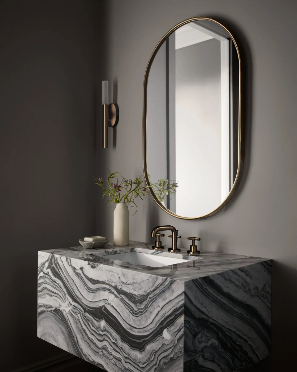 Золотое овальное зеркало "Рейли" является идеальным дополнением для вашей ванной комнаты или другого помещения, где вам требуется функциональность и элегантный дизайн. Это зеркало с тонкой золотистой рамой в цветовой гамме - латунь, которая добавляет изысканности и современности вашему интерьеру. Одной из самых привлекательных черт этого зеркала является его изогнутая рама, которая создает овальную форму. Такой дизайн придает зеркалу утонченный и элегантный силуэт, который отлично дополняет современный стиль интерьера. Благодаря своей универсальной форме, зеркало “Рейли” прекрасно впишется в любое помещение. Это зеркало предлагает вам несколько вариантов установки. Вы можете повесить его горизонтально или вертикально в зависимости от ваших предпочтений или потребностей. Настенное зеркало “Рейли” - это стильный и практичный выбор для всех, кто хочет добавить элегантность и функциональность в свой интерьер. Сочетание минималистского дизайна, элегантной черной рамы и удобной установки делает его идеальным решением для ванной комнаты или других помещений, где вы хотите создать запоминающийся образ.