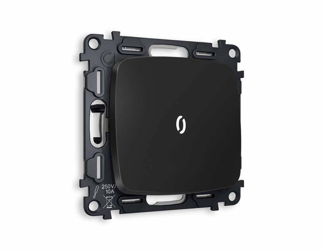 Комплект механизма 1-кл выключателя AMBRELLA VOLT с подсветкой 5600K OMEGA Черный матовый QUANT (OP8020, VM101, G14W) MO802015