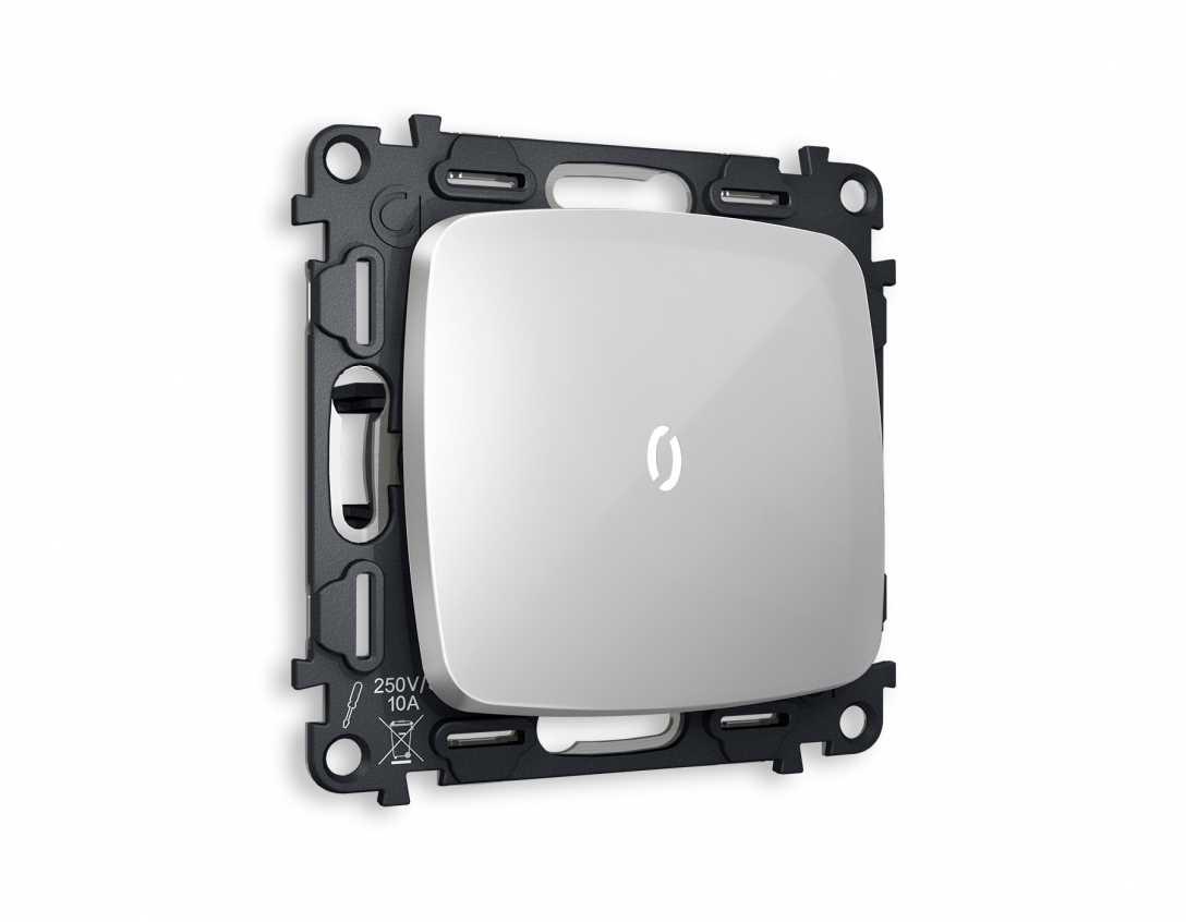 Комплект механизма 1-кл выключателя AMBRELLA VOLT с подсветкой 5600K OMEGA Серебро глянец QUANT (OP4020, VM101, G14W) MO402015