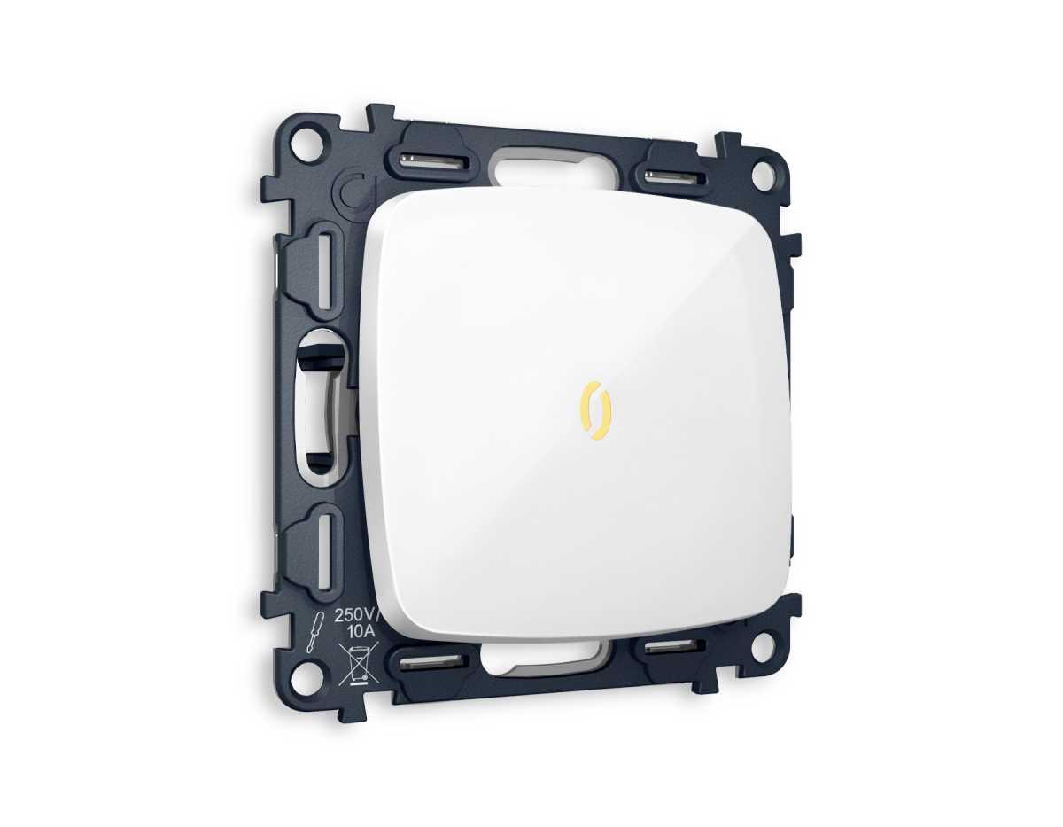 Комплект механизма 1-клавишного выключателя с подсветкой 3200K OMEGA Белый глянец 10A-250V QUANT (OP1020, VM101, G11Y) MО102010