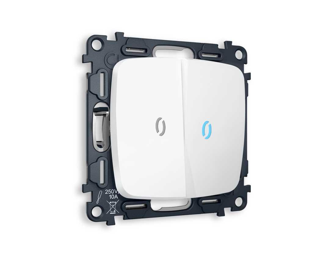 Комплект механизма 2-кл проходного выключателя AMBRELLA VOLT с подсветкой 10000K OMEGA Белый матовый QUANT (OP1240, VM120, G29B) MO124040