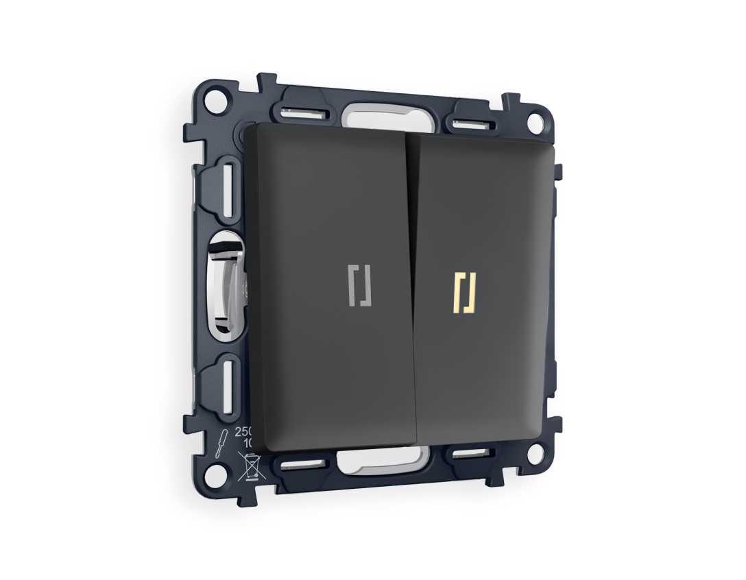 Комплект механизма 2-кл проходного выключателя AMBRELLA VOLT с подсветкой 3200K ALFA Графит мягкое касание QUANT (AP9040, VM120, G22Y) MA904030