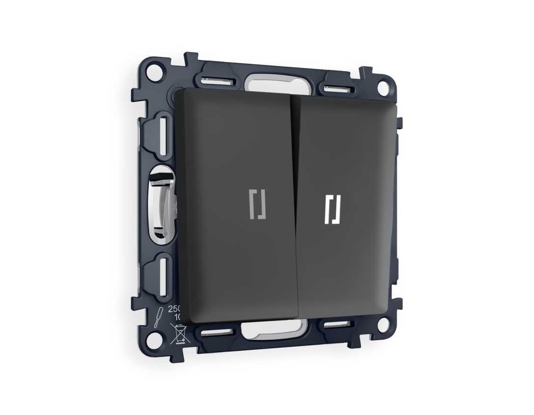 Комплект механизма 2-кл проходного выключателя AMBRELLA VOLT с подсветкой 5600K ALFA Графит мягкое касание QUANT (AP9040, VM120, G25W) MA904035