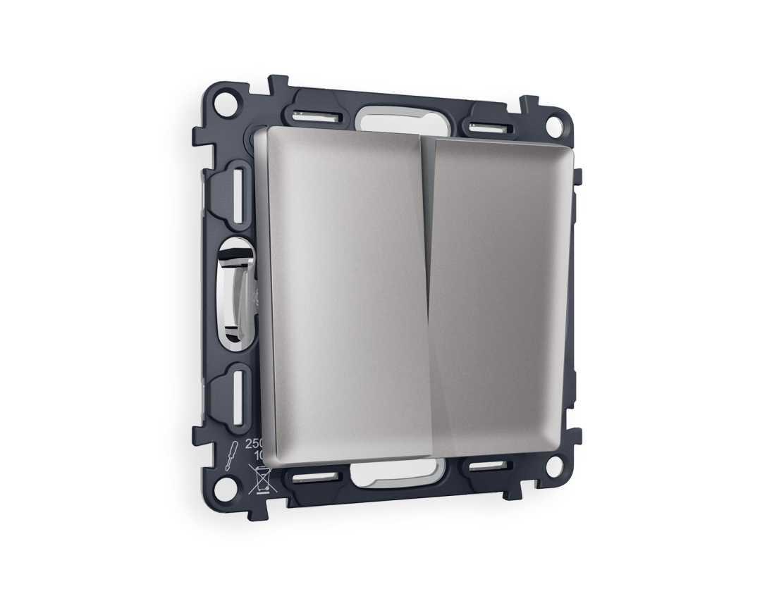 Комплект механизма 2-кл выключателя AMBRELLA VOLT ALFA Сталь матовый QUANT (AP5030, VM115) MA503010