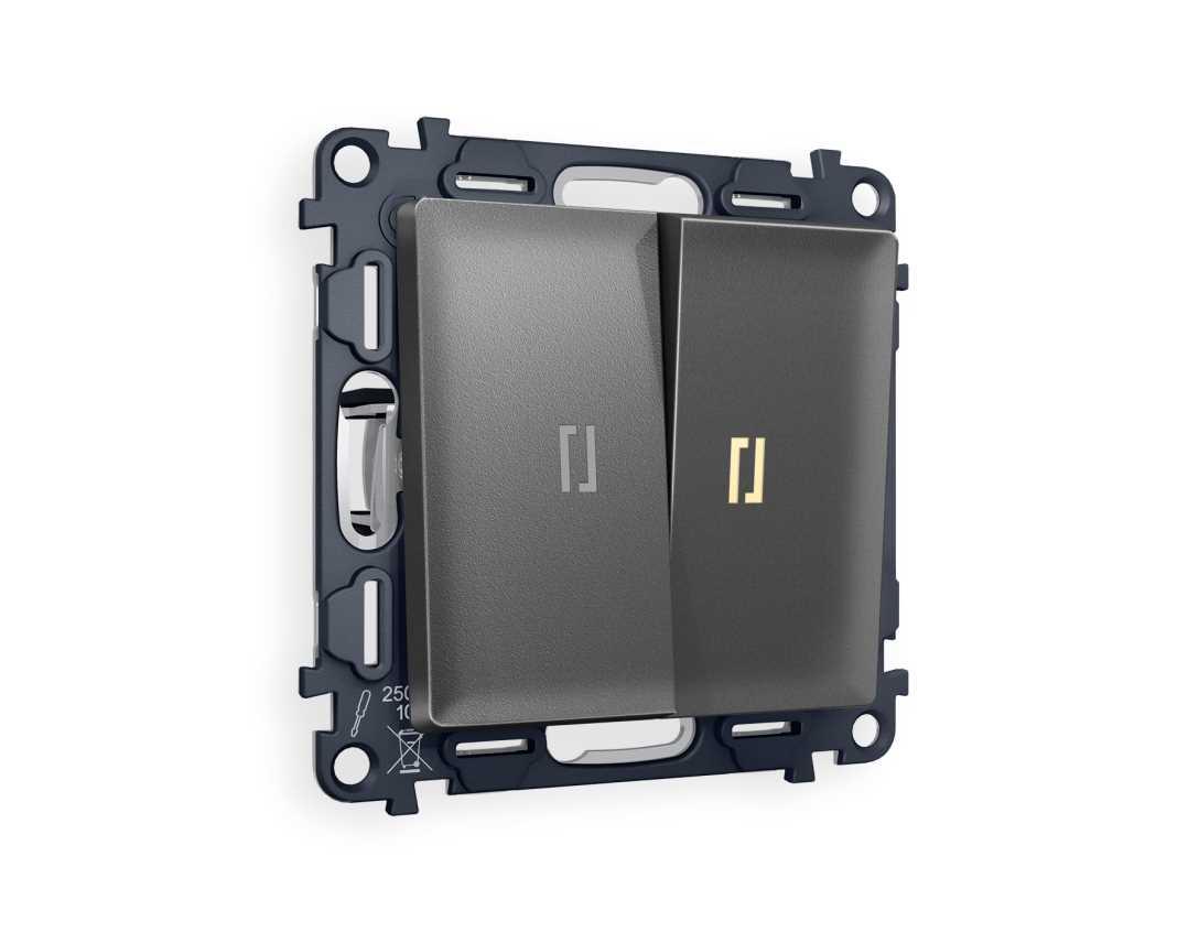 Комплект механизма 2-кл выключателя AMBRELLA VOLT с подсветкой 3200K ALFA Антрацит серый QUANT (AP6540, VM115, G11Y) MA654010