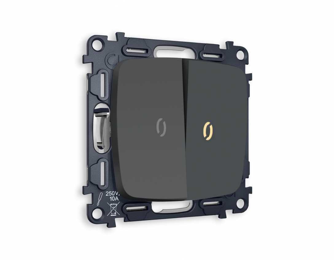 Комплект механизма 2-кл выключателя AMBRELLA VOLT с подсветкой 3200K OMEGA Графит мягкое касание QUANT (OP9040, VM115, G11Y) MO904010
