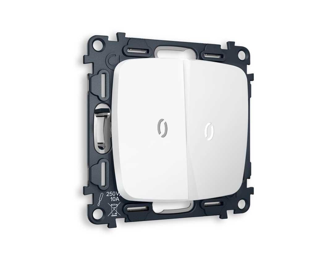 Комплект механизма 2-кл выключателя AMBRELLA VOLT с подсветкой 5600K OMEGA Белый матовый QUANT (OP1240, VM115, G14W) MO124015