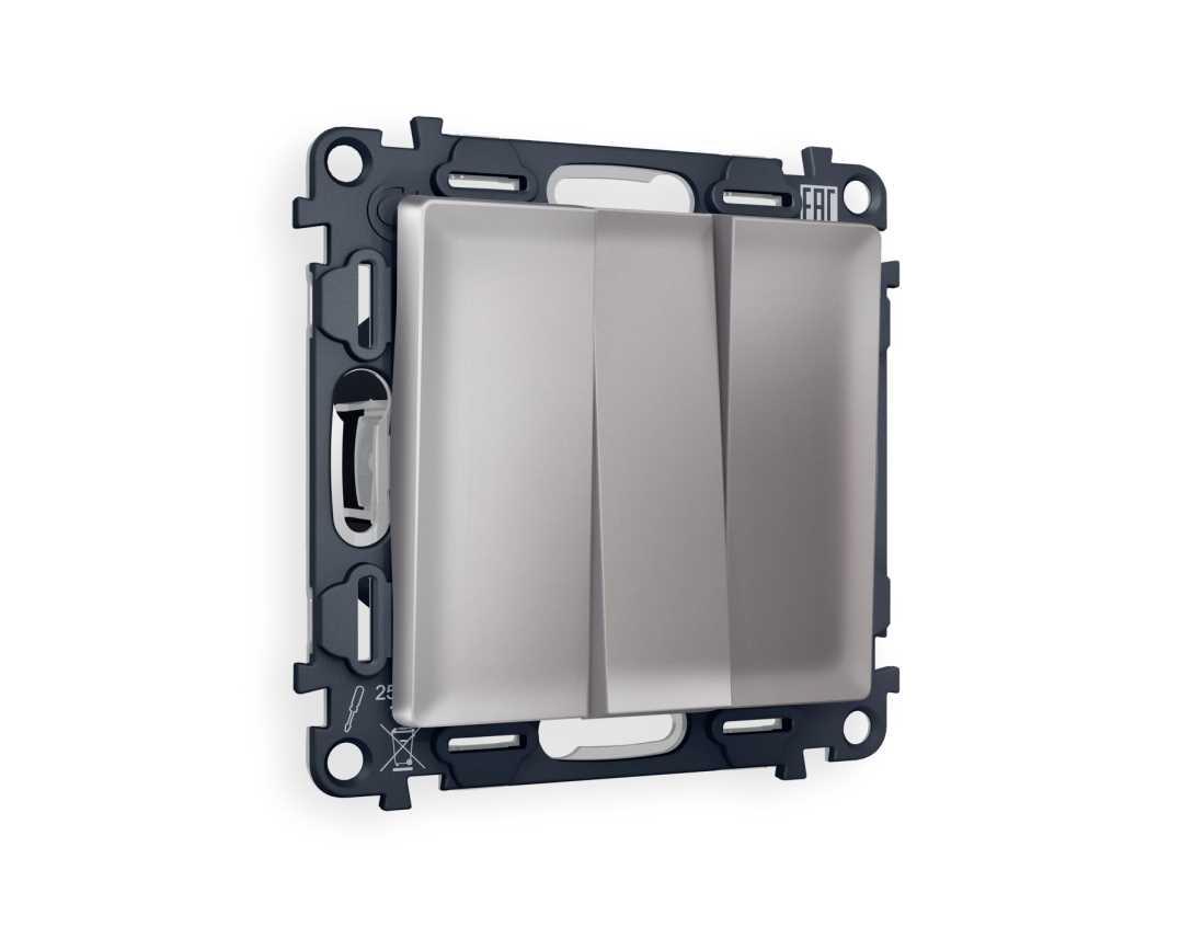 Комплект механизма 3-кл выключателя AMBRELLA VOLT ALFA Сталь матовый QUANT (AP5050, VM133) MA505010