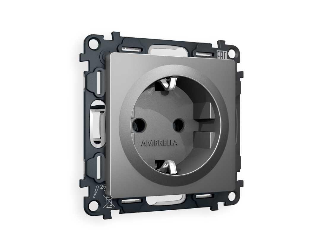 Комплект механизма электрической розетки AMBRELLA VOLT ALFA Антрацит серый с/з на винтовых зажимах QUANT (AP6560, VM141) MA656010