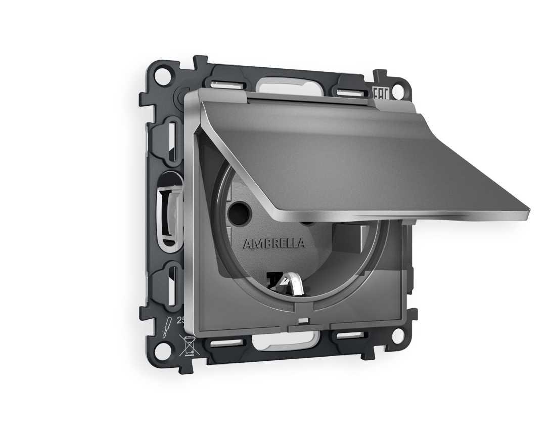Комплект механизма электрической розетки AMBRELLA VOLT ALFA Антрацит серый с/з с шторками и крышкой IP44 QUANT (AP6580, VM141) MA658010