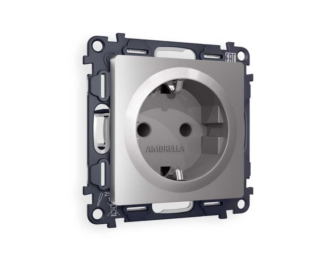 Комплект механизма электрической розетки AMBRELLA VOLT ALFA Сталь матовый с/з с шторками QUANT (AP5070, VM141) MA507010