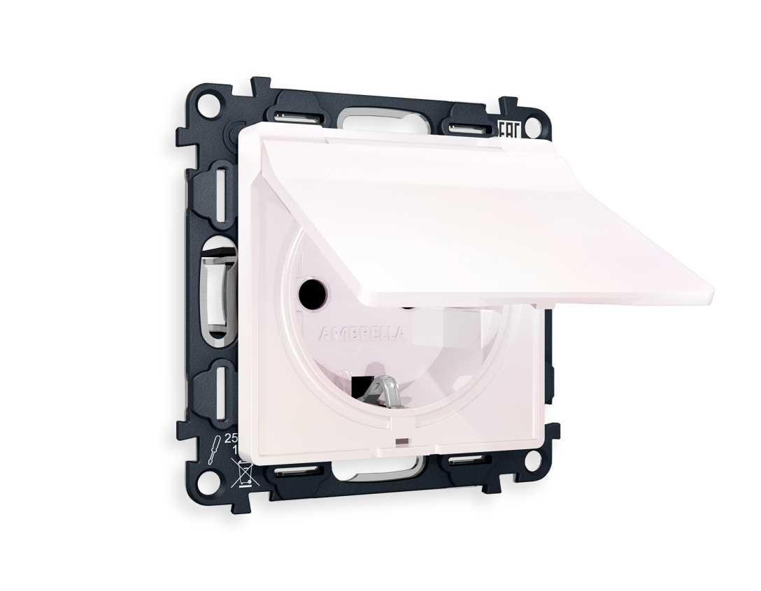 Комплект механизма электрической розетки AMBRELLA VOLT ALFA Жемчуг с/з с шторками и крышкой IP44 QUANT (AP2080, VM141) MA208010