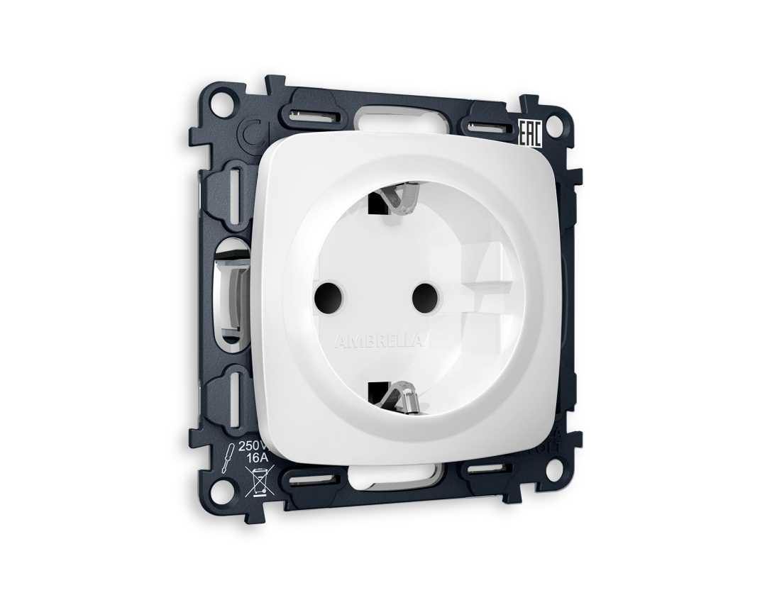 Комплект механизма электрической розетки AMBRELLA VOLT OMEGA Белый матовый с/з с шторками QUANT (OP1270, VM141) MO127010
