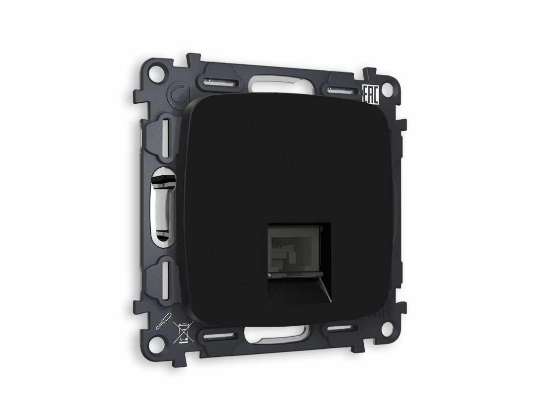Комплект механизма компьютерной розетки AMBRELLA VOLT OMEGA Черный матовый RJ-45(8P8C) CAT6 с шторкой QUANT (OP8120, VM188) MO812010