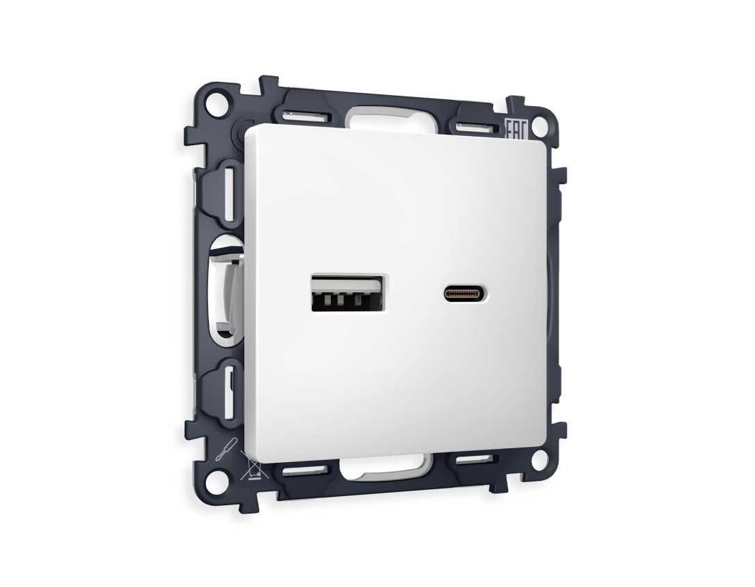 Комплект механизма розетки AMBRELLA VOLT ALFA Белый матовый 2USB A+C 20W (быстрая зарядка) QUANT (AP1310, VM177) MA131010