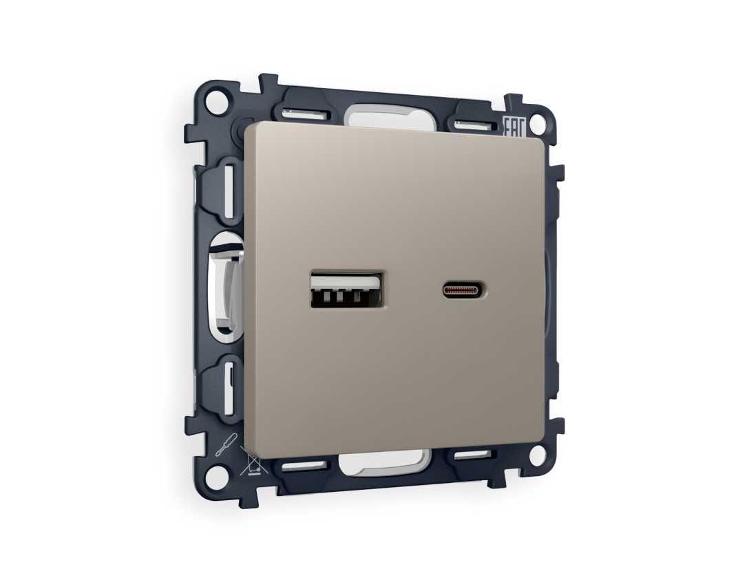 Комплект механизма розетки AMBRELLA VOLT ALFA Серо-бежевый матовый 2USB A+C 20W (быстрая зарядка) QUANT (AP3710, VM177) MA371010