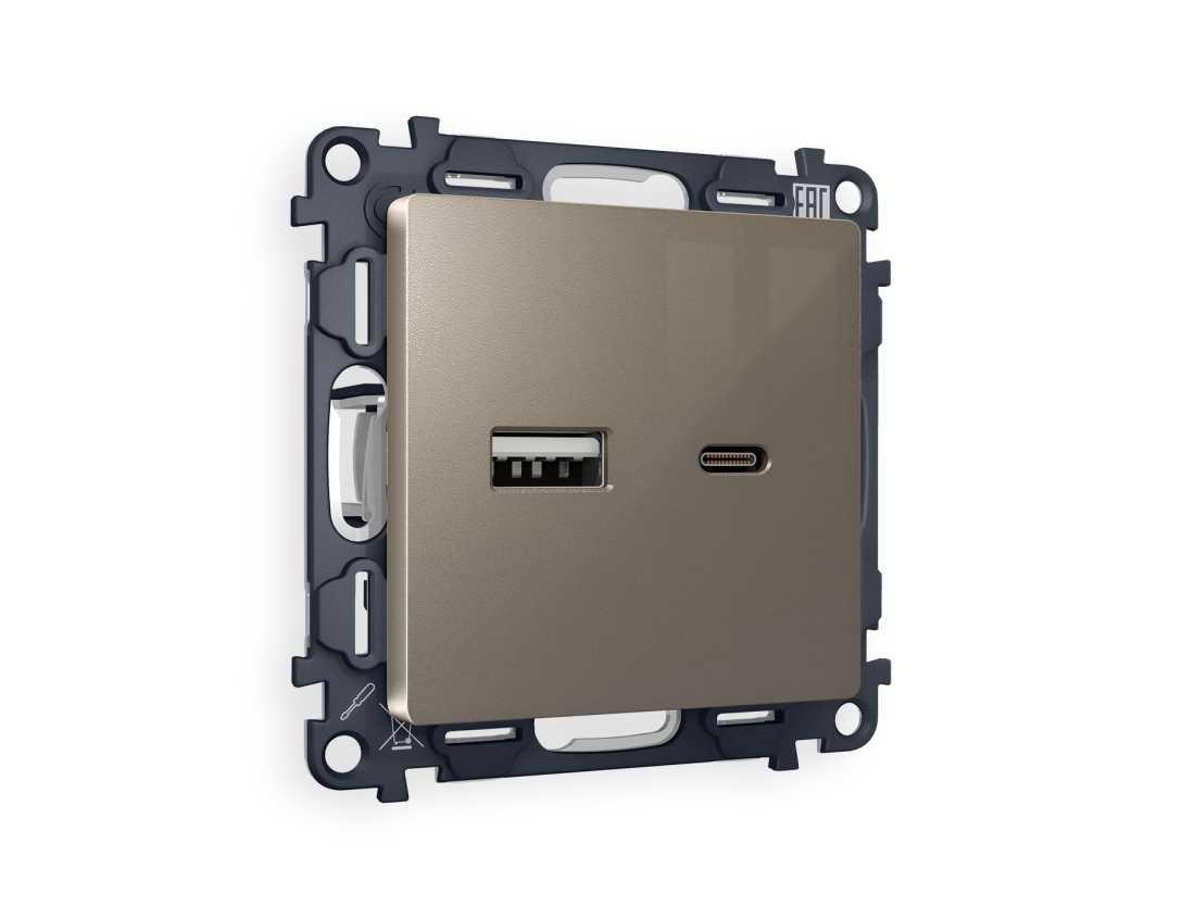 Комплект механизма розетки AMBRELLA VOLT ALFA Темная бронза матовый 2USB A+C 20W (быстрая зарядка) QUANT (AP6410, VM177) MA641010