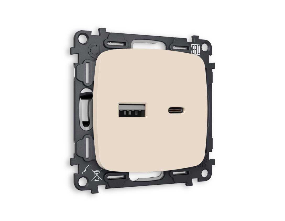 Комплект механизма розетки AMBRELLA VOLT OMEGA Бежевый матовый 2USB A+C 20W (быстрая зарядка) QUANT (OP3310, VM177) MO331010