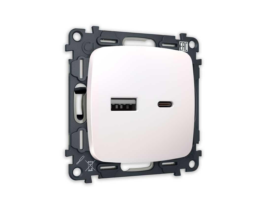 Комплект механизма розетки AMBRELLA VOLT OMEGA Жемчуг 2USB A+C 20W (быстрая зарядка) QUANT (OP2110, VM177) MO211010