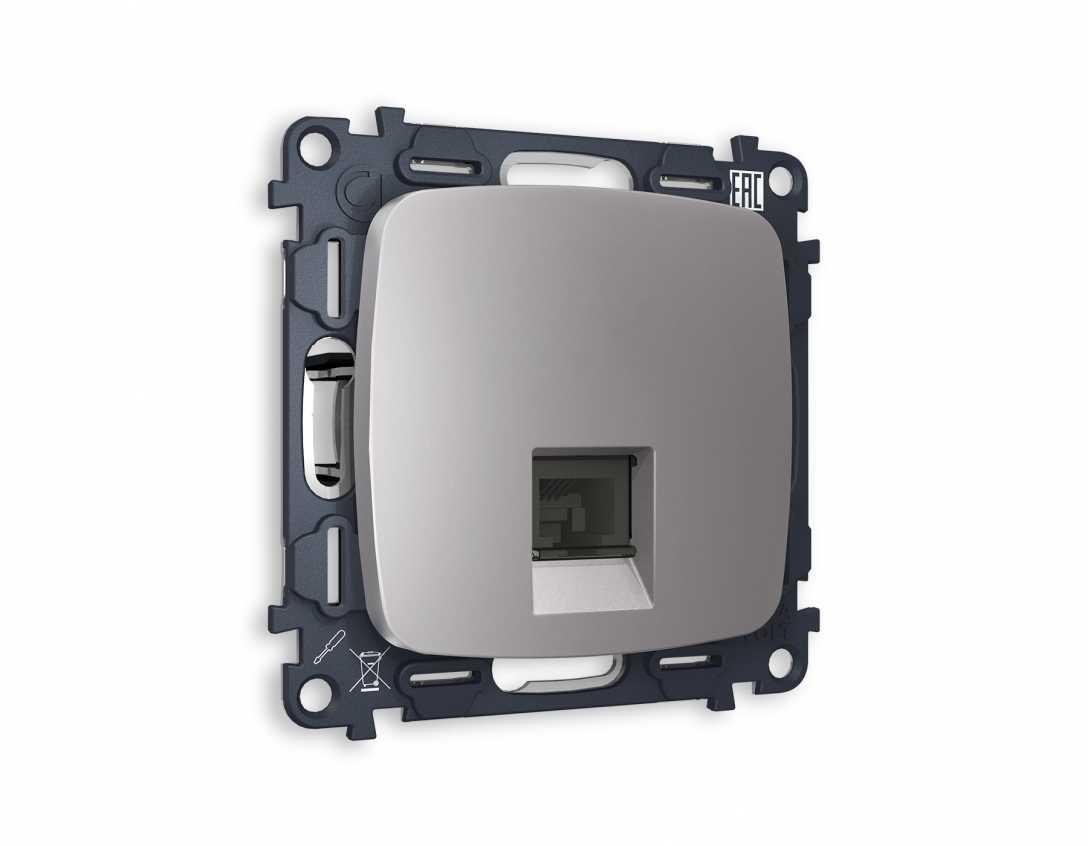 Комплект механизма телефонной розетки AMBRELLA VOLT OMEGA Сталь матовый RJ-11(4P4C) с шторкой QUANT (OP5120, VM190) MO512030