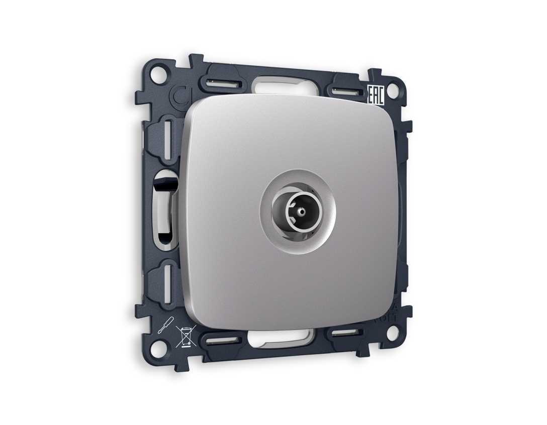 Комплект механизма TV розетки проходной AMBRELLA VOLT OMEGA Сталь матовый 5-1000 MHz 4dB QUANT (OP5130, VM211) MO513030