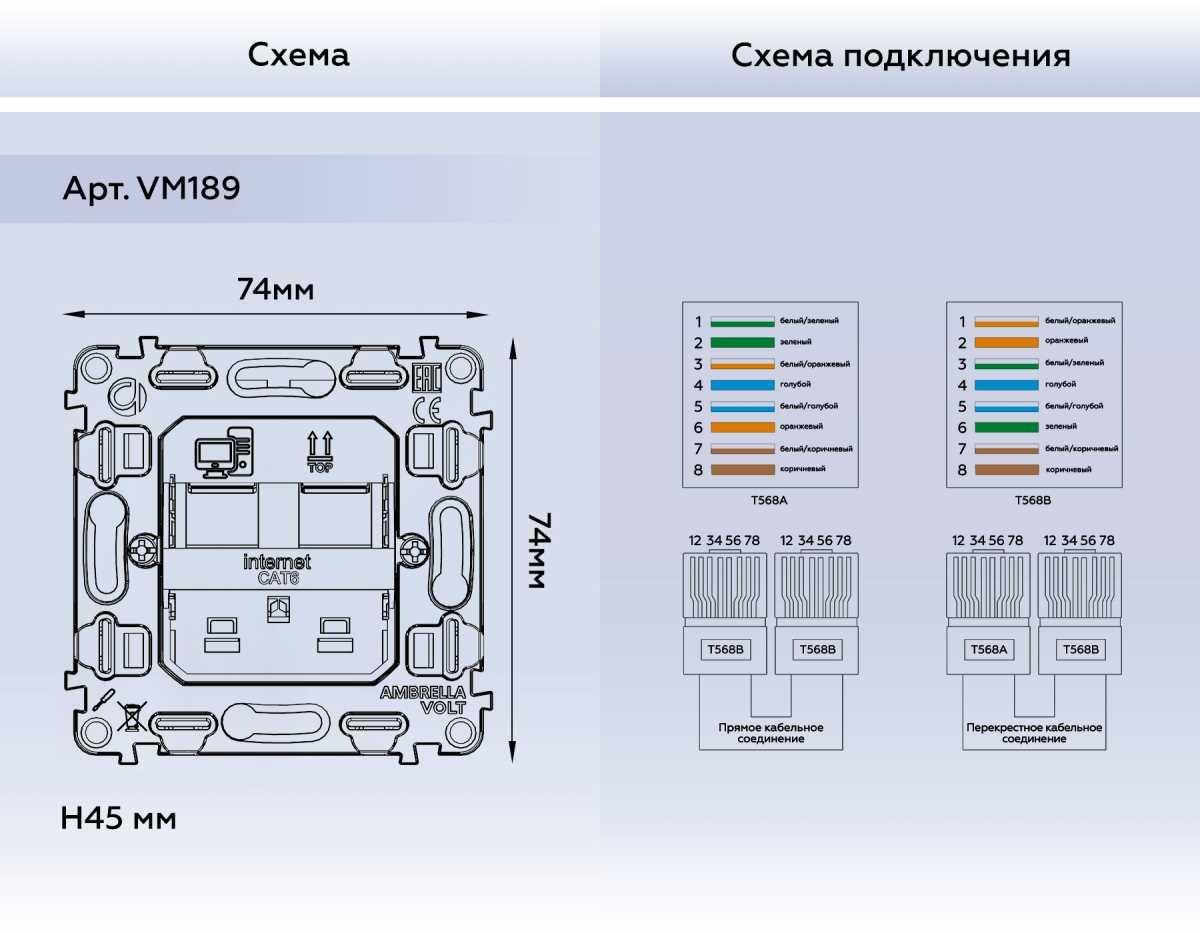 Механизм компьютерной двойной розетки RJ-45 (8P8C) CAT6 Ambrella Volt VM189
