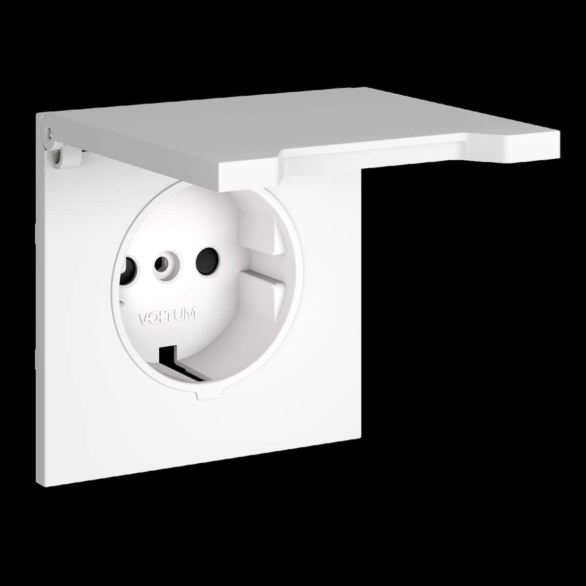 Накладка для розетки с заземлением защитными шторками и крышкой S70 (белый матовый) Voltum VLS000802