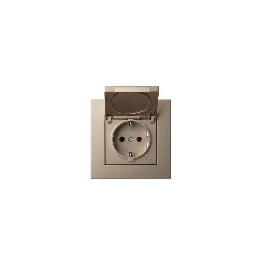 Розетка 2P+E Liregus Epsilon с крышкой шампань 28-313