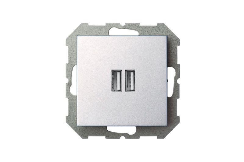 Розетка 2xUSB Liregus Epsilon серебро 28-1857