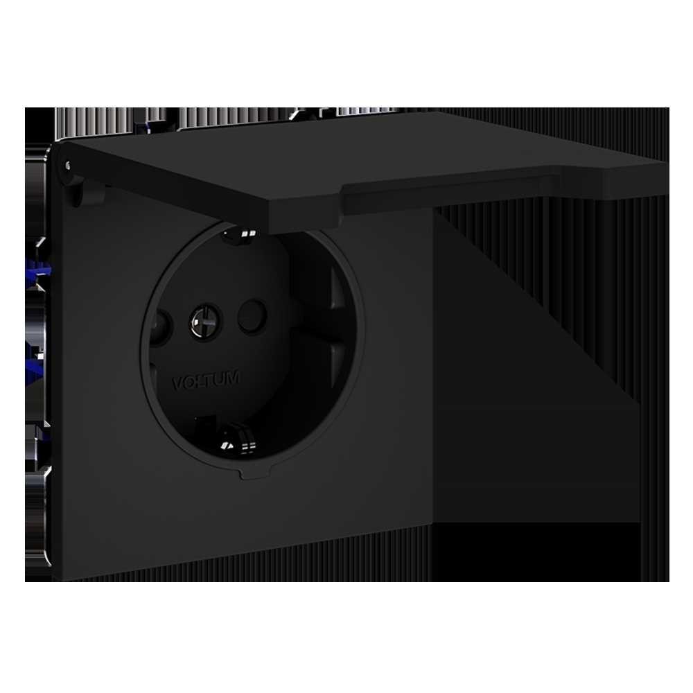 Розетка встраиваемая Voltum S70 с заземлением, защитными шторками и крышкой 16А, (черный матовый) VLS040308