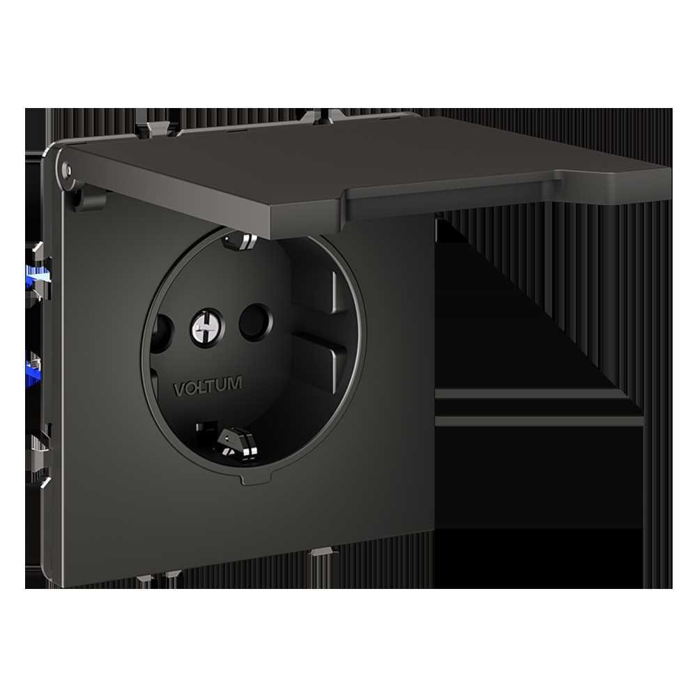 Розетка встраиваемая Voltum S70 с заземлением, защитными шторками и крышкой 16А, (титан) VLS040306