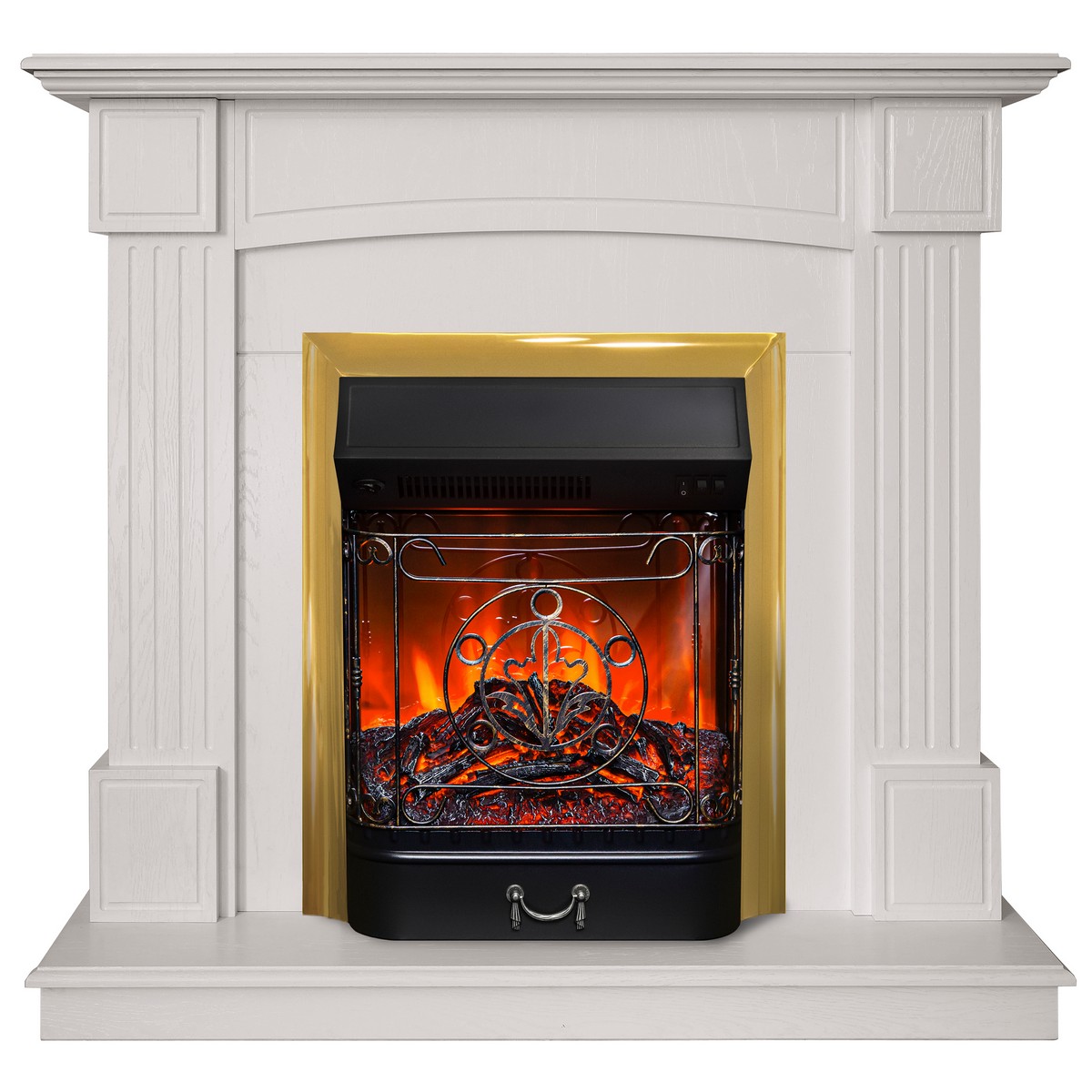Электрокамин RealFlame Andrea WT фактурный белый с очагом Majestic Lux Brass