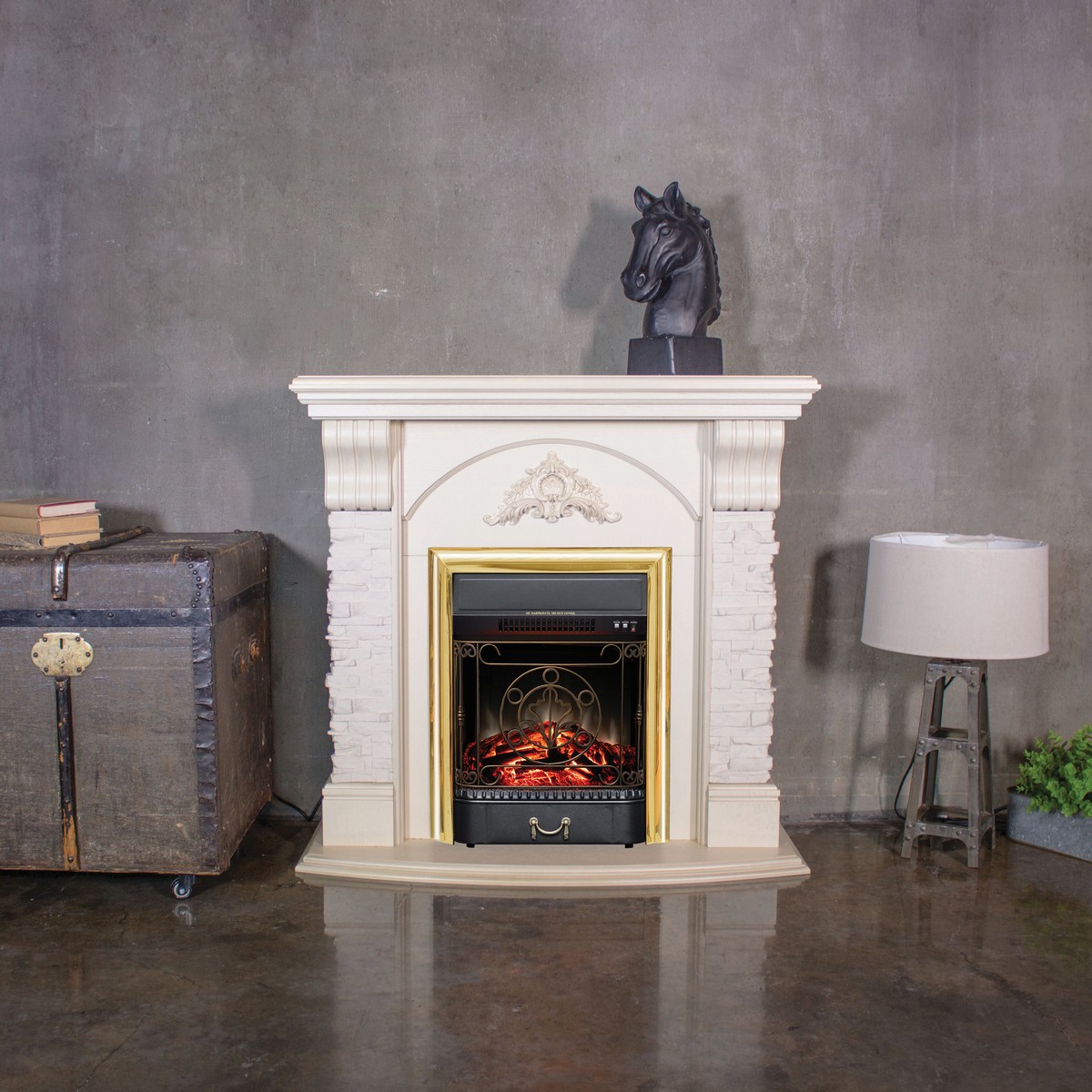 Электрокамин Athena WT с очагом Majestic Lux Brass